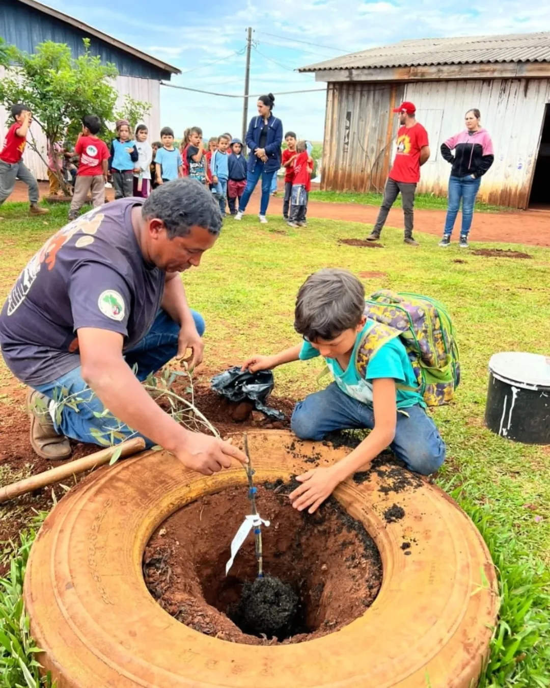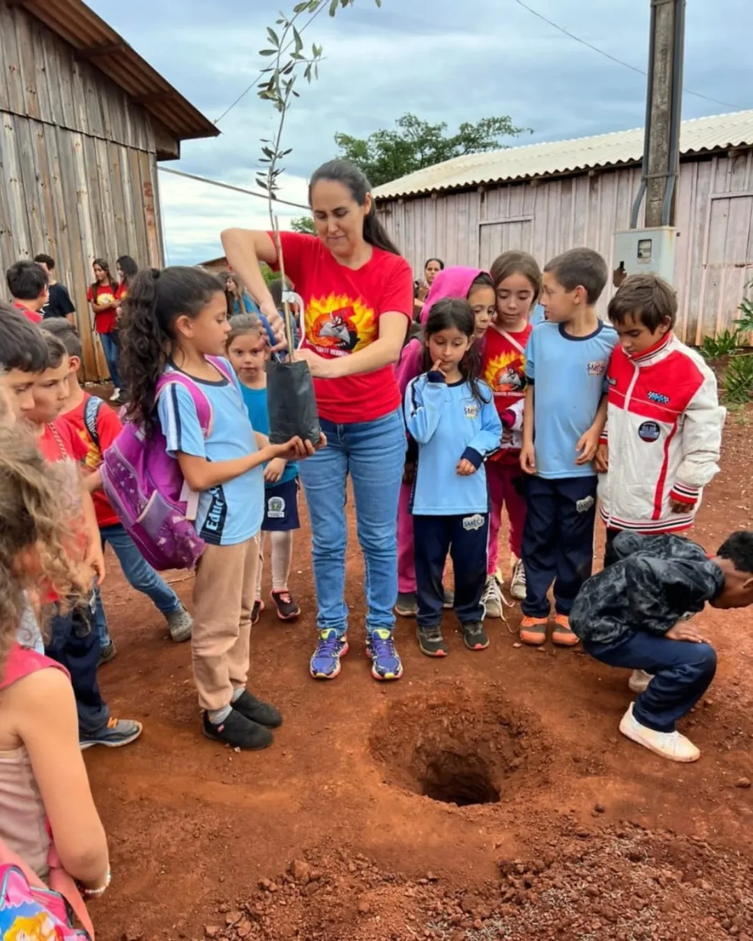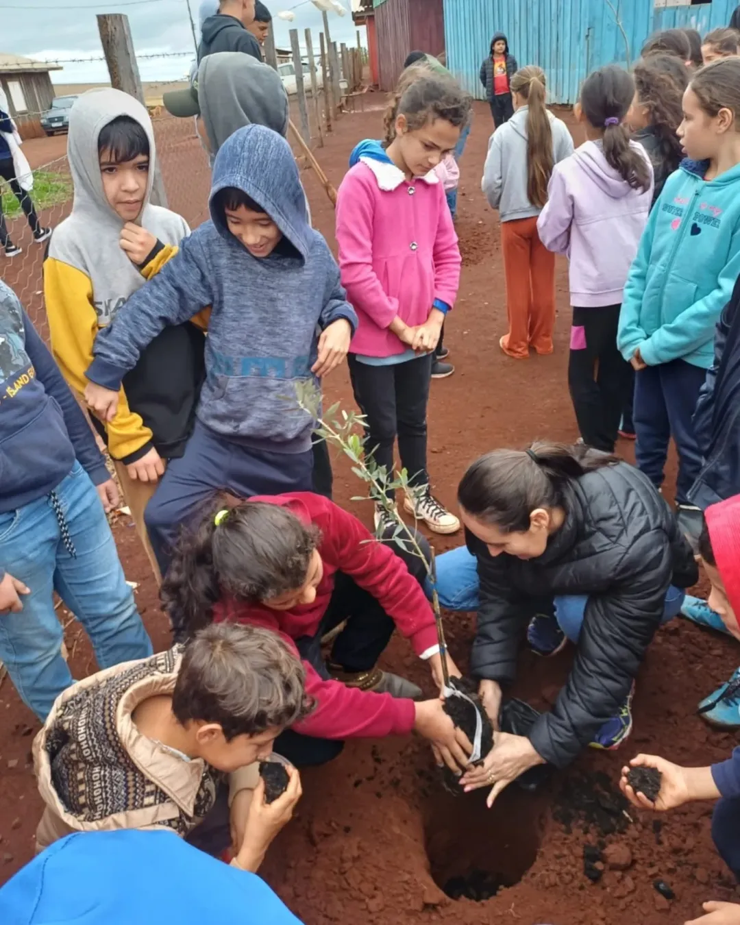 Jornada Sem Terrinha, crianças plantam mudas de oliveira na região Centro do Paraná, Foto: comunicação MST-PR