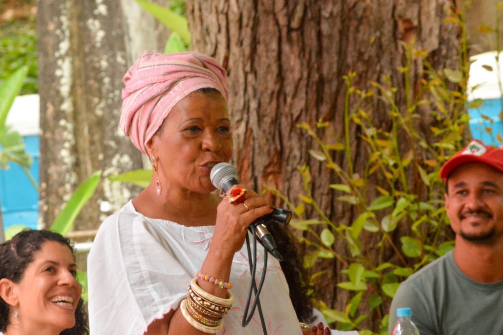 Para Makota Celinha, o racismo estrutural e o patriarcado estão entrelaçados na crise ambiental e na fome, e é preciso mudar a realidade de quem está nos espaços de poder. “A comida de qualidade não chega por conta da ganância humana que não permite. O MST é nosso primo, os primeiros sem terra deste país somos nós, pretos e pretas. É preciso reconhecer a nossa história.”, contextualiza.