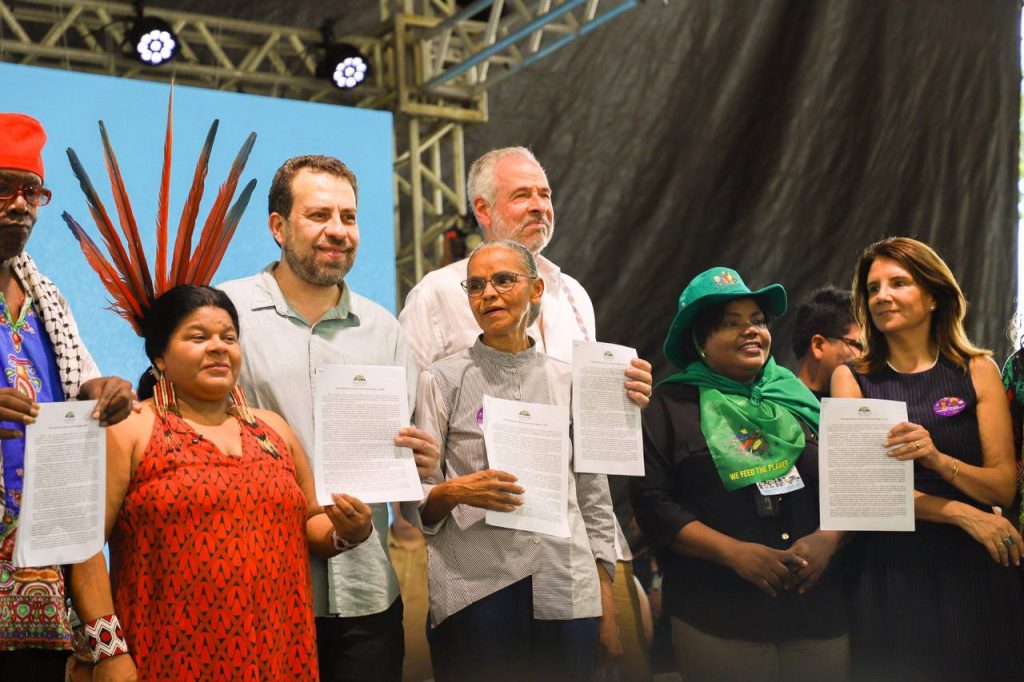 “Mudar relação com planeta é tarefa urgente. Queremos um mundo em paz, solidário, menos desigual, livre da pobreza, da fome e da crise climática” afirmou Lula na declaração. Marina Silva, seguindo a linha do Presidente, reforçou a urgência de “fazer o mapa do caminho” para zerar o desmatamento, citando a seca dos rios, os planaltos que incendeiam e os povos indígenas que ficam isolados. “Já vivemos a emergência climática: o rio que seca, o Pantanal que queima, os tornados no Sul no Brasil, como aquele que atingiu o Paraná”, lembrou.