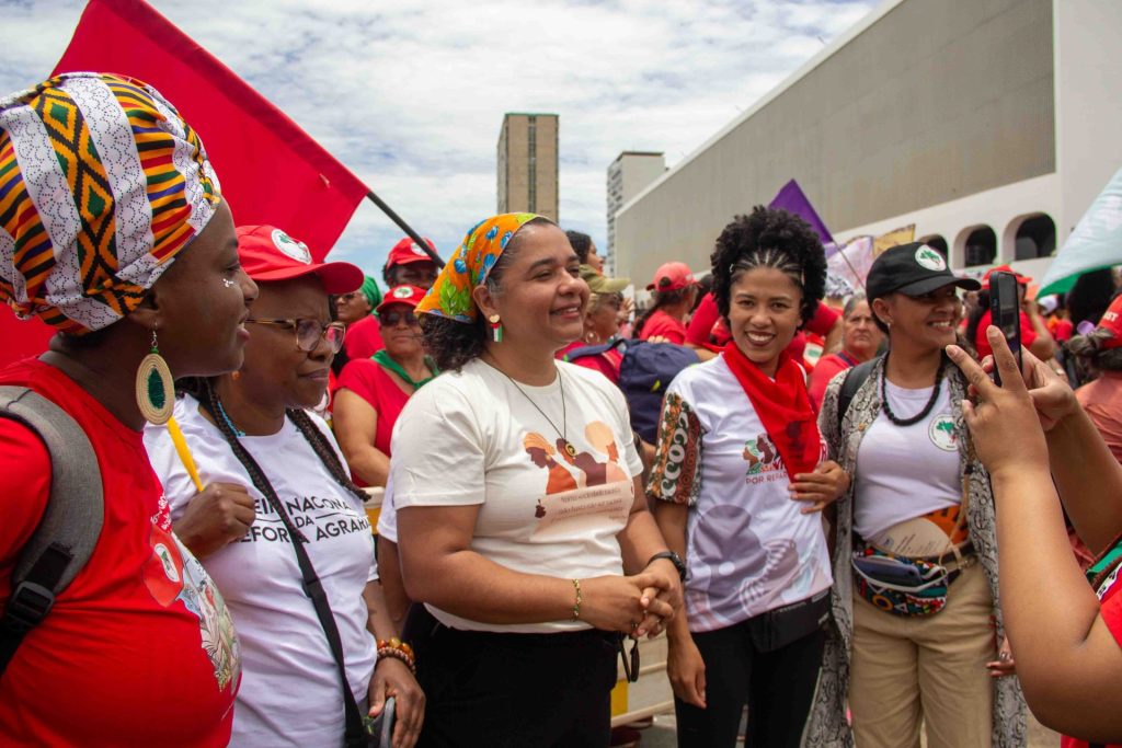 “Quando a mulher negra se movimenta, toda a estrutura da sociedade se movimenta com ela”. A frase conhecida da ativista Angela Davis é cantoria na boca das militantes Sem Terra, que levaram à Brasília a realidade dos acampamentos. Hoje, mais de 100 mil famílias seguem acampadas no Brasil à espera da Reforma Agrária Popular, sendo uma parcela significativa dessas famílias chefiada por mulheres negras que veem na terra a única saída para romper o ciclo de violência doméstica e patrimonial.