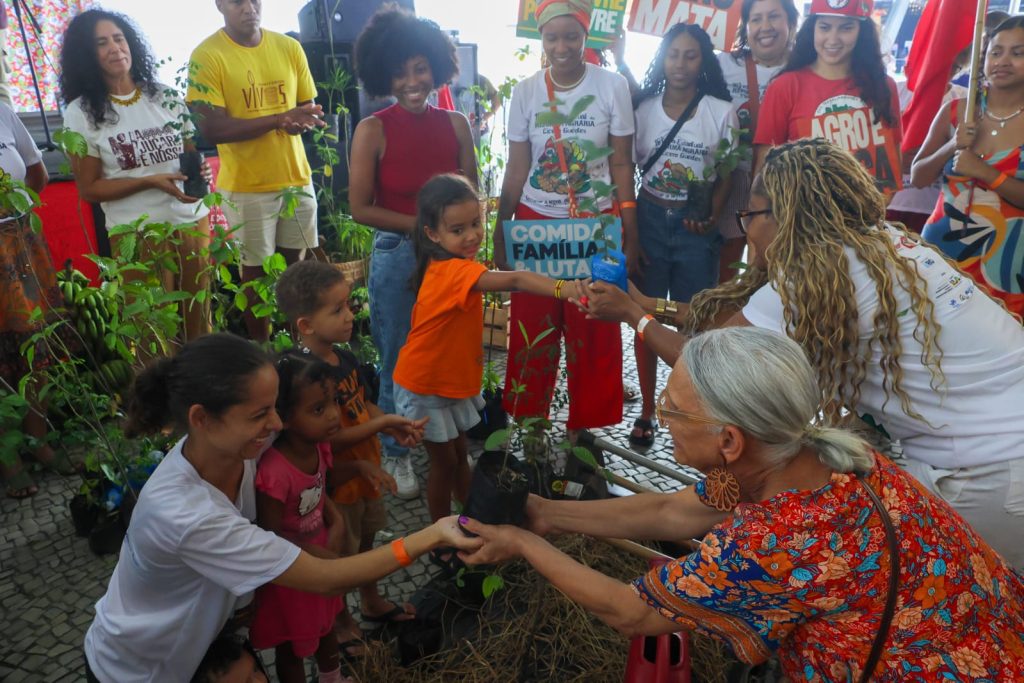 Outro grande gesto concreto da Jornada da Natureza foi a solidariedade dos assentados da Reforma Agrária e agricultores urbanos presentes na Feira, que doaram alimentos agroecológicos a sete territórios fluminenses que fomentam a soberania alimentar em suas regiões. “Um dos princípios do MST é a solidariedade. Por isso, nós estamos partilhando com a classe trabalhadora os alimentos saudáveis e sem agrotóxicos. Os beneficiados são o Quilombo das Caboclas, a Comunidade do Sereno, a Serra da Misericórdia, a Comunidade do Formiga, a Organização Telhado Verde, a Ocupação do Movimento Unido dos Camelôs, o MUCA, e o Quilombo da Gamboa”, informou Eró Silva.
