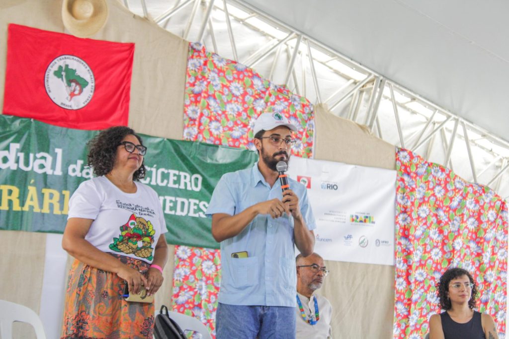 Na quarta-feira (10), último dia da 16ª Feira Estadual Cícero Guedes da Reforma Agrária Popular, o seminário “Defender a vida e a natureza para a construção de uma nova sociedade” reuniu movimentos sociais, trabalhadores urbanos e rurais, pesquisadores e visitantes da feira para debater os impactos da crise climática, ambiental e política que atravessa o Brasil e o mundo. O evento, realizado no Largo da Carioca, no Centro do Rio de Janeiro, buscou fomentar reflexões sobre a urgência de uma mudança de paradigma social e produtivo.