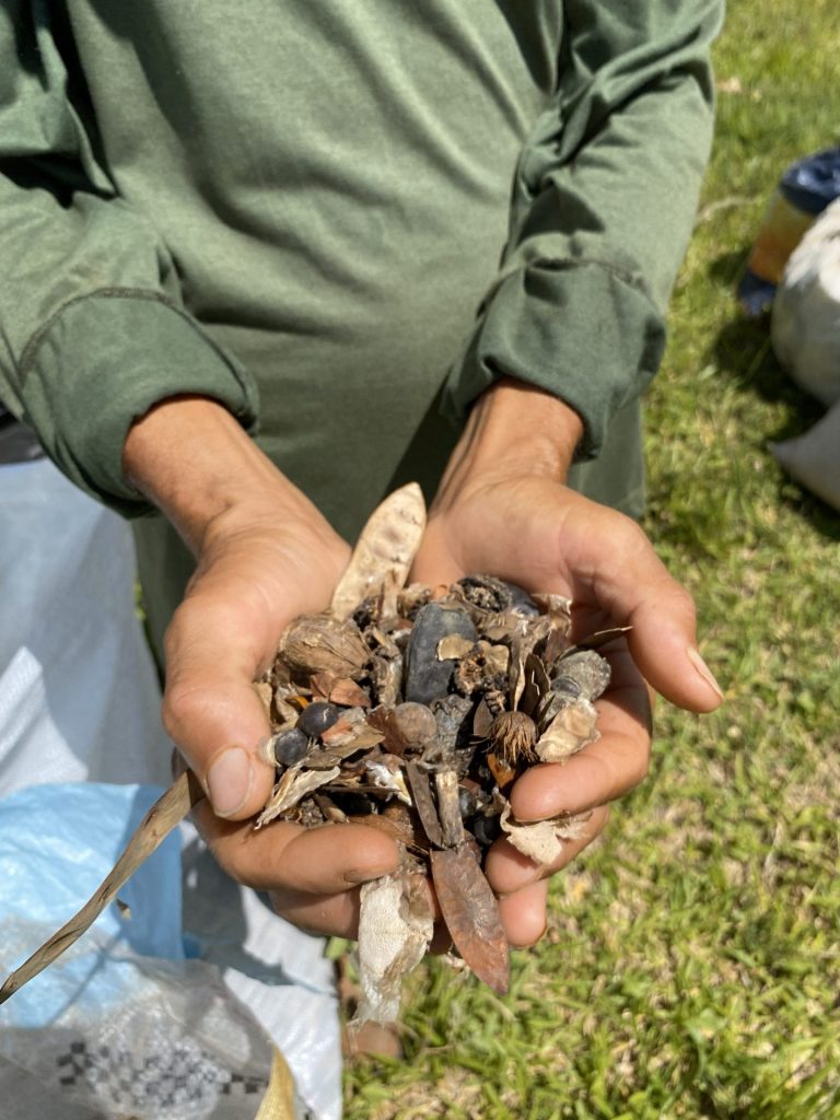 “Essa ação começa na colheita. Muitas dessas sementes são nossas, produzidas aqui mesmo no Quilombo Campo Grande, pelas árvores que já plantamos ao longo dos anos. É fruto de um trabalho contínuo de cuidado com a terra.”