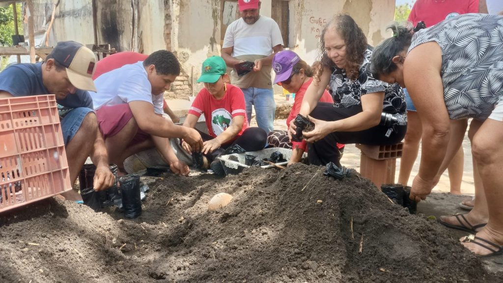 No último domingo (11), diversas famílias Sem Terra, que vivem no acampamento Arcanjo Belarmino, em Pedras de Fogo, Paraíba, se reuniram em ação de plantio de mudas de árvores e sementes, o objetivo de reforçar o compromisso com a agroecologia, a preservação ambiental e a recuperação ambiental nos territórios da Reforma Agrária.