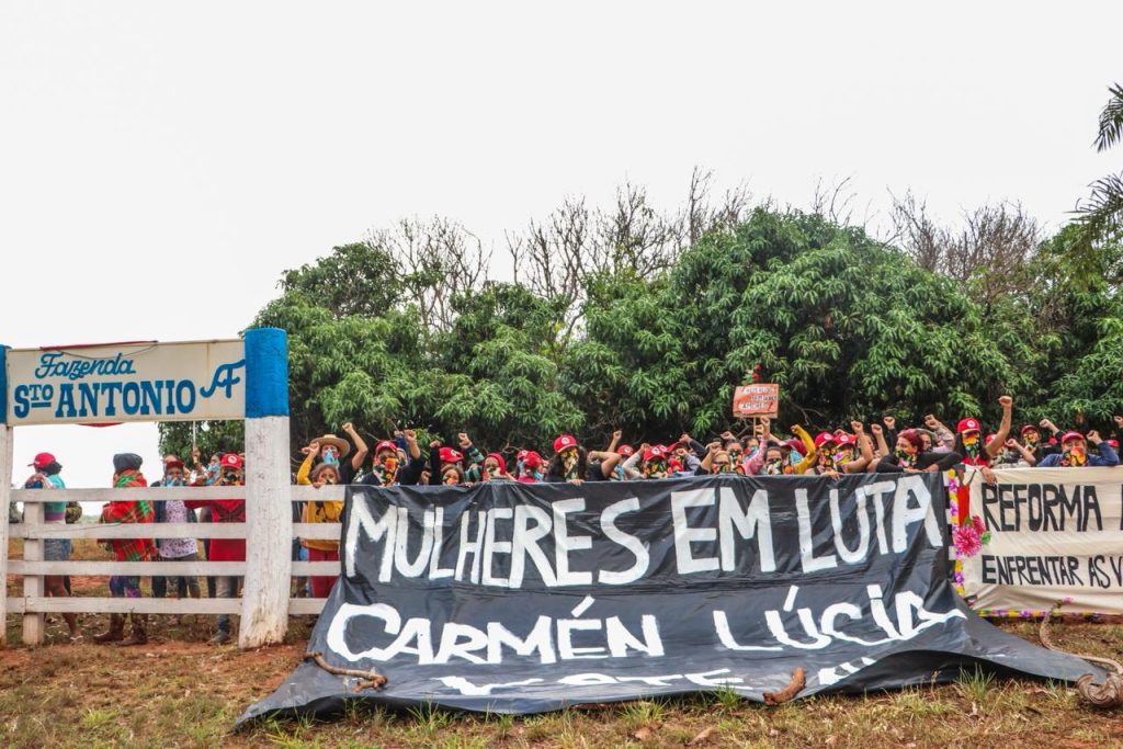 Reinvindicamos que a ministra Carmen Lúcia paute a votação pela inconstitucionalidade da lei 17.554/2022, chamada Lei da Grilagem. A área ocupada hoje pelas mulheres Sem Terra já foi julgada como tal, portanto, deveria ser destinada à Reforma Agrária.