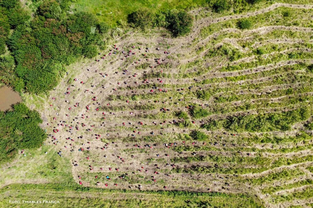 Um mutirão com cerca de 700 pessoas tornou possível o plantio de mais de 10 mil mudas na comunidade Herdeiros da Terra de Primeiro de Maio. Foto: Thiarles França