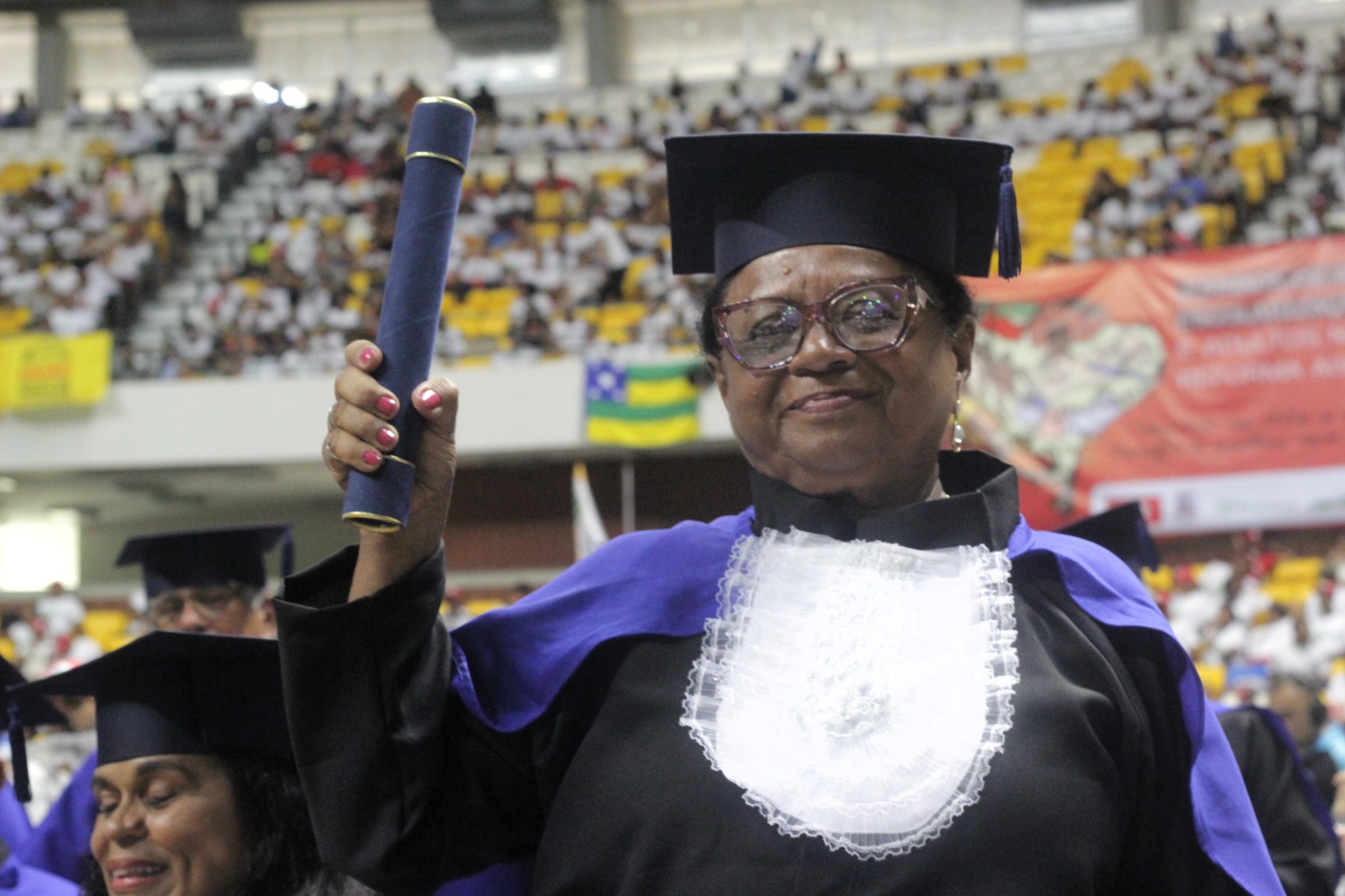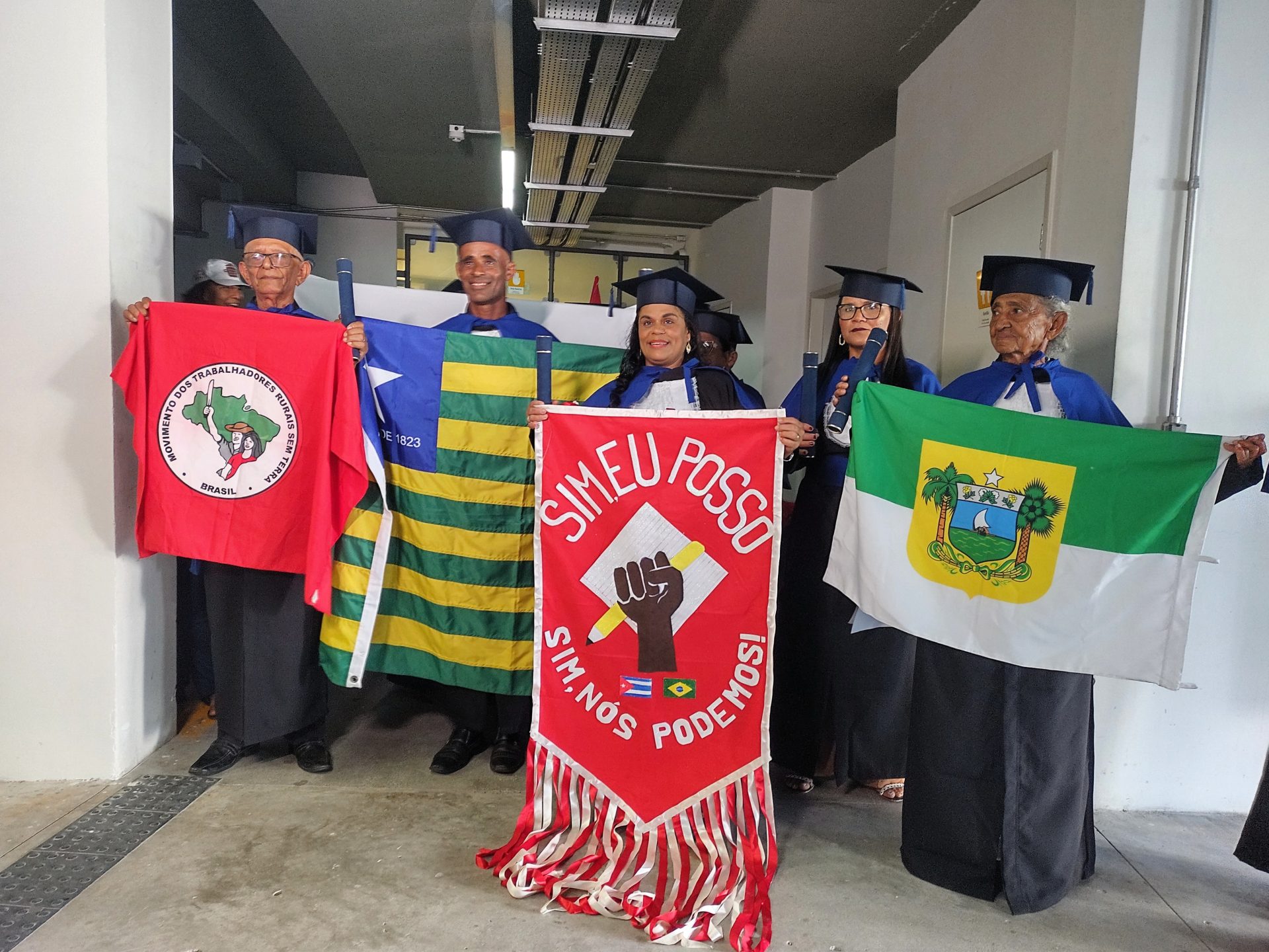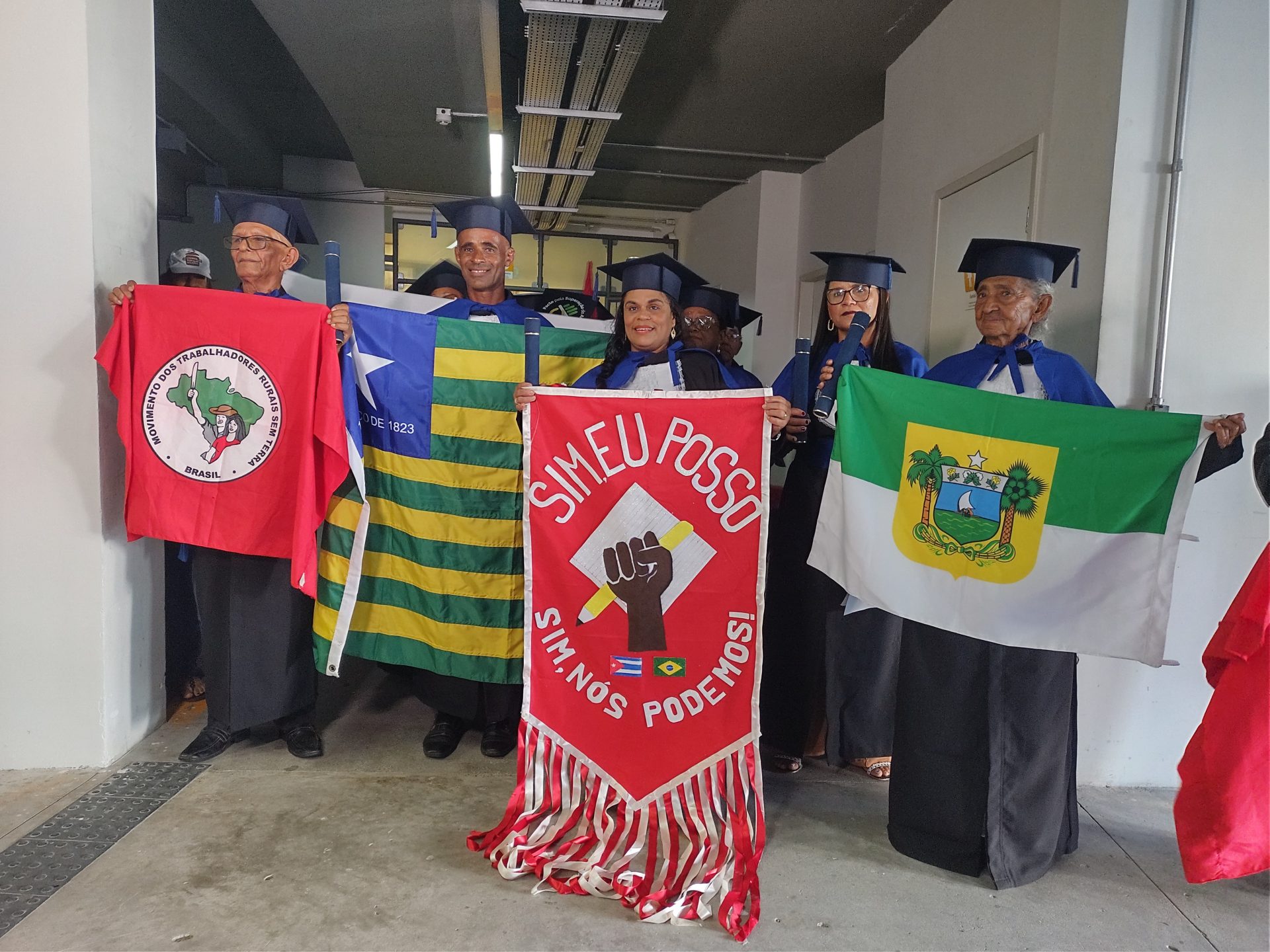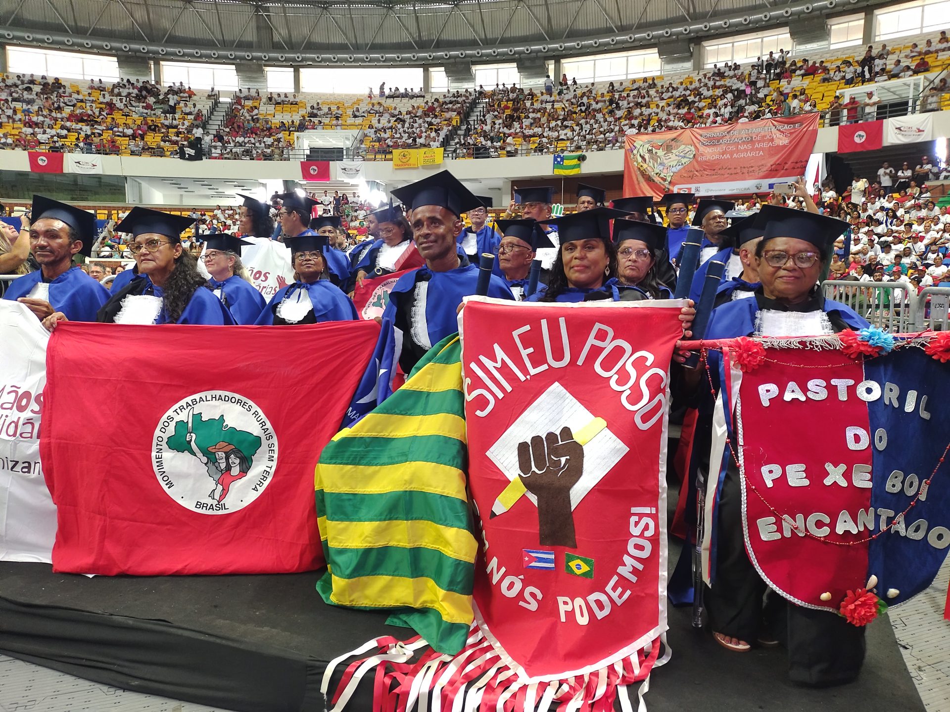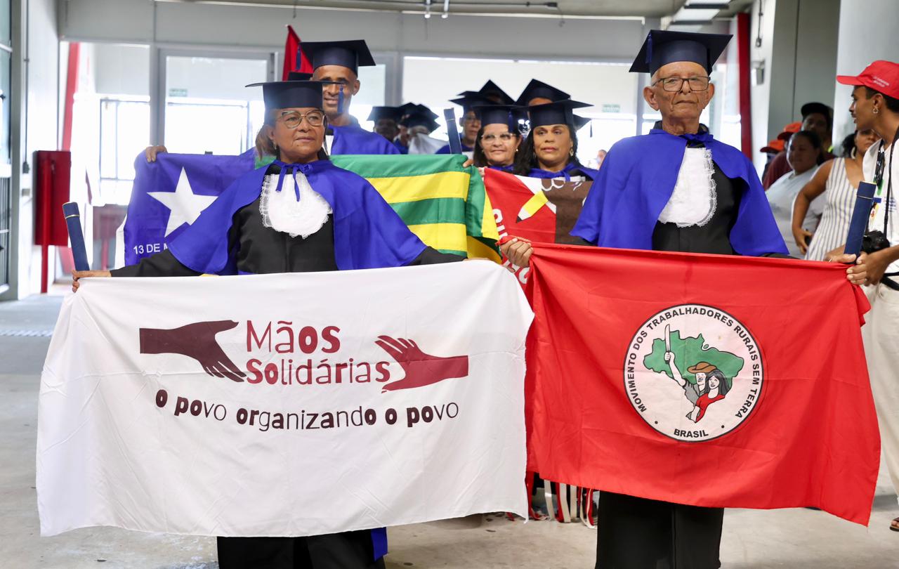 Para muitos participantes, a formatura representa uma mudança profunda na vida cotidiana. Geni Otaviano do Santos, acampada no Acampamento São José, em Paulo Afonso (BA), comemora a conclusão da jornada.