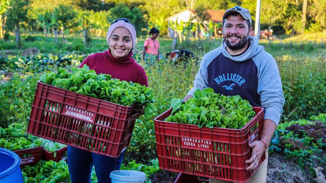 Para isso, a cooperação é um princípio elementar, exercitado cotidianamente. Hoje temos 160 cooperativas e 190 associações, as quais possuem 120 agroindústrias de pequeno e médio porte. Essas empresas sociais atuam em diferentes níveis, da produção, agroindustrialização até a comercialização de alimentos. O amadurecimento dessas formas organizativas conduziu a criação de cadeias produtivas da Reforma Agrária, com produção em diferentes estados. As cadeias produtivas mais consolidadas nos assentamentos do MST são do arroz, leite, carne, café, cacau, sementes, mandioca, cana-de-açúcar e grãos. Todavia, a diversidade de alimentos produzidos em cada região do país passa das diversas centenas, abastecendo feiras locais e regionais, cestas e cooperativas de consumo, mercados locais e, principalmente, a alimentação escolar e de outros entes públicos, como asilos, presídios, quartéis, etc.