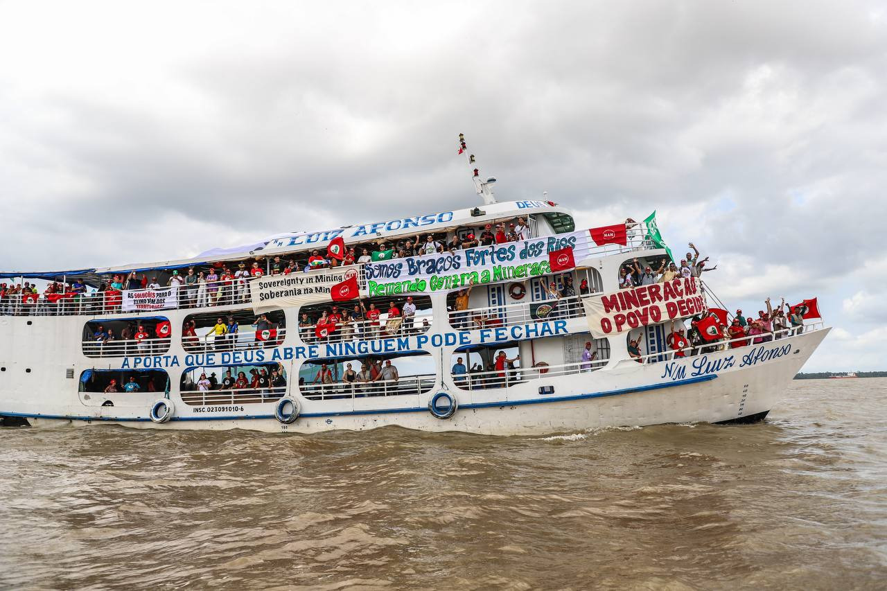 Na abertura do evento, 1.300 Sem Terra marcharam rumo à barqueata com 200 embarcações percorrendo as águas da Baía do Guajará