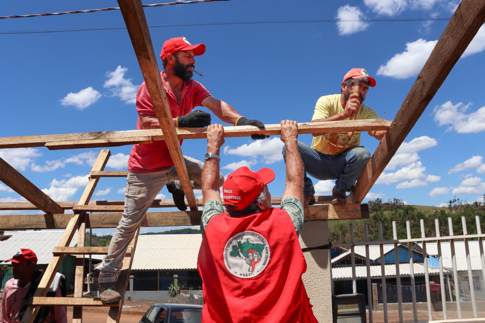 Mutirão de trabalho de reconstrução de moradias começou dois dias após o tornado, com participação de militantes do MST de todas as regiões do Paraná